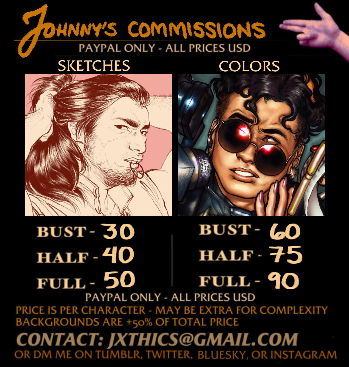 These are my personal use only prices. Please contact me for commercial use inquiries!General WILL DO/WON'T DO: